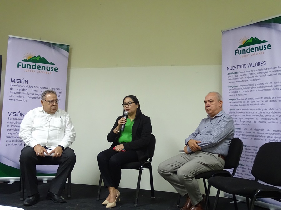 Nacional de Microfinanzas); Ada Eveling Rivera, Gerente General de Fundenuse y